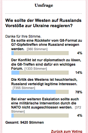Schon komisch, wieso die demokratisch nicht-legitimierte Regierung keinen Bock darauf hatte, die Sniper-Sache genauer zu untersuchen. Erst ein paar Tage nachdem der Leak öffentlich wurde, haben sich die westlichen Medien und die illegale Regierung in Kiev darüber geäussert und gleich versucht dem Putin den schwarzen Peter zuzuschieben. Nicht nur hat die illegale Regierung von einer Untersuchung Schiss, sondern auch vor Neu-Wahlen. Denn die Neonazis stellen einen Drittel in der neuen Regierung, haben in der Bevölkerung aber kaum einen Rückhalt. Aufgrund ihrer Gewaltanwendung scheint aber niemand den Mumm zu haben ihnen entgegenzutreten. Auch Yatsenjuk und seine Gefolgsleute haben keinen grossen Rückhalt in der Bevölkerung, genauso Timoschenko oder der Hampelmann Klitschko. Yanukowitsch natürlich genau so, denn das Volk möchte neue, transparente und vor allem nicht-korrupte Volksvertreter. Auf youtube ist auf diversen Videos zu sehen, wie Yatsenjuk von der Mehrheit ausgebuht wird oder der Klitschko von den Neonazis verprügelt wird. Einen richtigen Neuanfang bietet aber weder die US/EU noch Putin. Zu brisant und bedeutend ist die geostrategische Lage der Ukraine dafür.