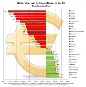 960 Milliarden sind aber nicht nur Umverteilung. Die groesste Position im Budget sind Agrarsubventionen (rund 50%). Das fliesst wohl genau zurueck an die Geberlaender. Regionale Unterstuetzungen sind 30% oder rund 300 Milliarden. Toent nach viel, ist es aber nicht: das Bruttosozialprodukt ist 14'300 Milliarden. Also knapp 2% des BSP werden umverteilt... (und wieviel davon fliesst ueber Vertraege wieder an die eigene Industrie?)