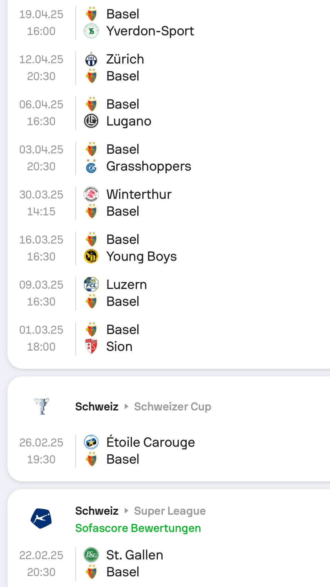 Fänds geil wenn Basel dahei gege Lausanne gwünnt und au uswärts in Gülle. I ka unser Team momentan nid ischätze. S könnte genauseguet au 0 Pünkt useluege.