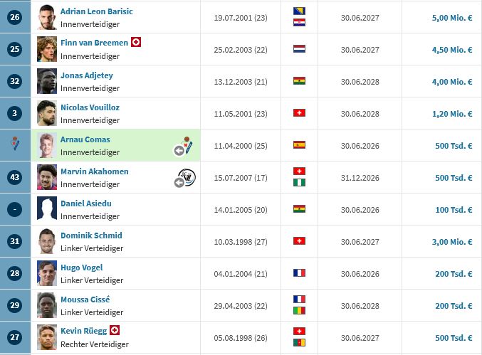 Es braucht zwingend Verstärkungen auf den Aussenpositionen! Wir können nicht jedes Jahr davon ausgehen dass sich Dominik Schmid nicht verletzt, Cissé scheint noch ein gutes Stück entfernt auf der linken Seite (evt. Leihe). Rechts haben wir den (leider) dauerverletzten Kevin Rüegg, Joe Mendes hat mich überzeugt aber bei spekulierten 4 Mio. muss man wohl davon absehen. Sprich ein Backup auf Links und mind. 1 Spieler auf rechts wird gesucht. Van Breemen wird mit seiner Verletzung wohl kaum wechseln, könnte mir vorstellen dass die Aktie Adjetey über die letzten Wochen wieder an Wert gewonnen hat.