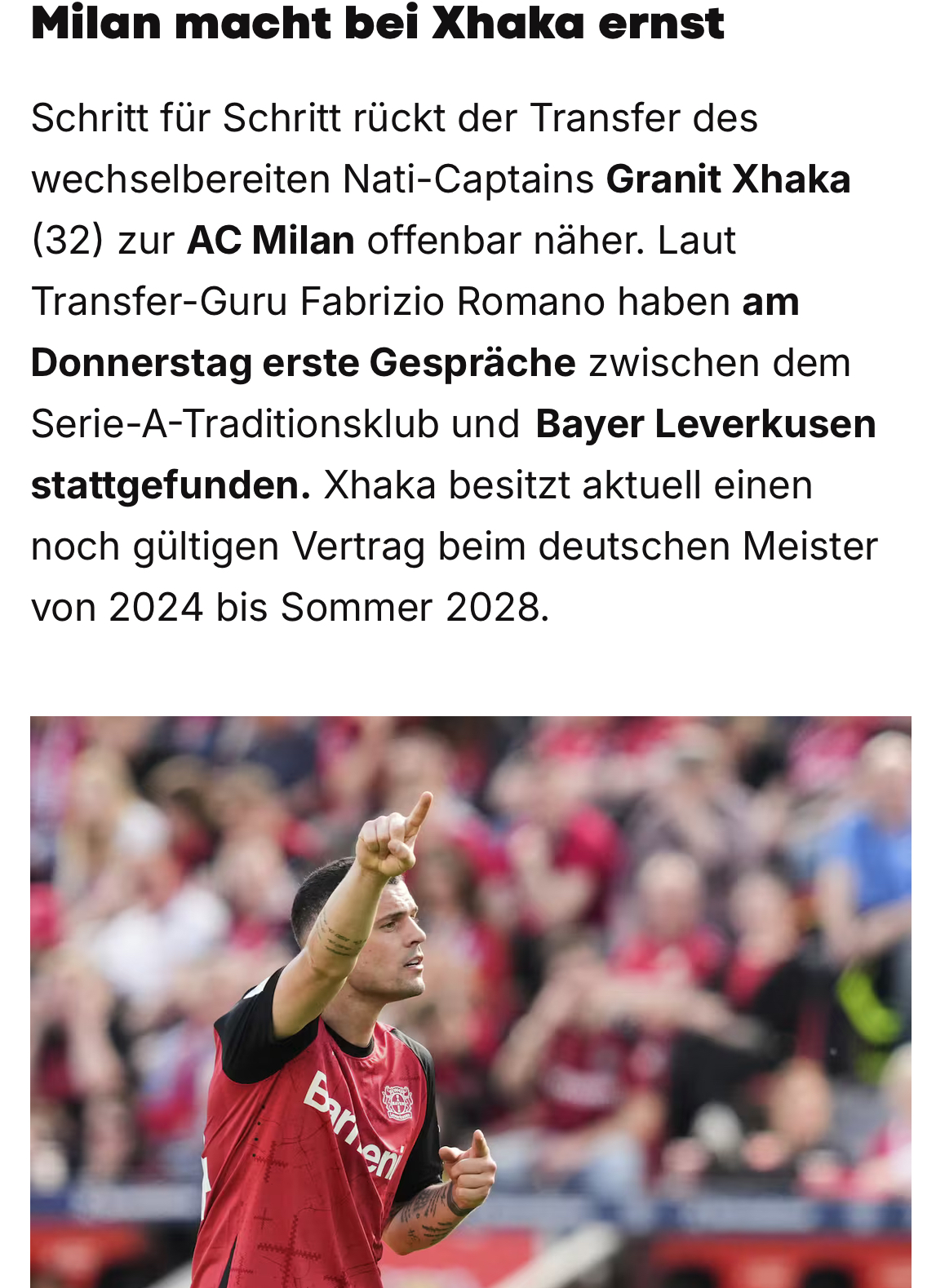 Ich will ja hoffen...aber seit mehreren Tagen schreibt Fabrizio Romano über Xhaka und Ac Milan.
