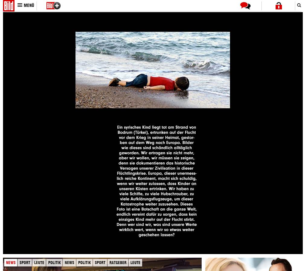 Die Medien sollten mutig genug sein, solche Bilder auf der Titelseite zu drucken. Fluechtlinge sind nicht Tiere, deren Tod uns am Arsch vorbei geht.