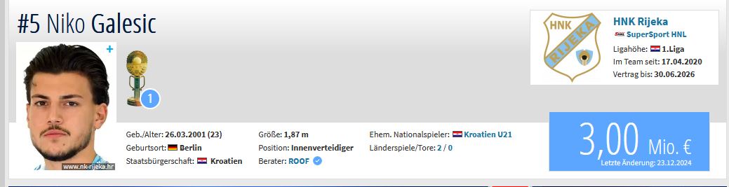 Bebbinho hat geschrieben: 30.12.2024, 16:06 Fc Basel war an Innenverteidiger Niko Galesic von HNK Rijeka dran. Dieser hat sich aber für Dinamo Zagreb entschieden.