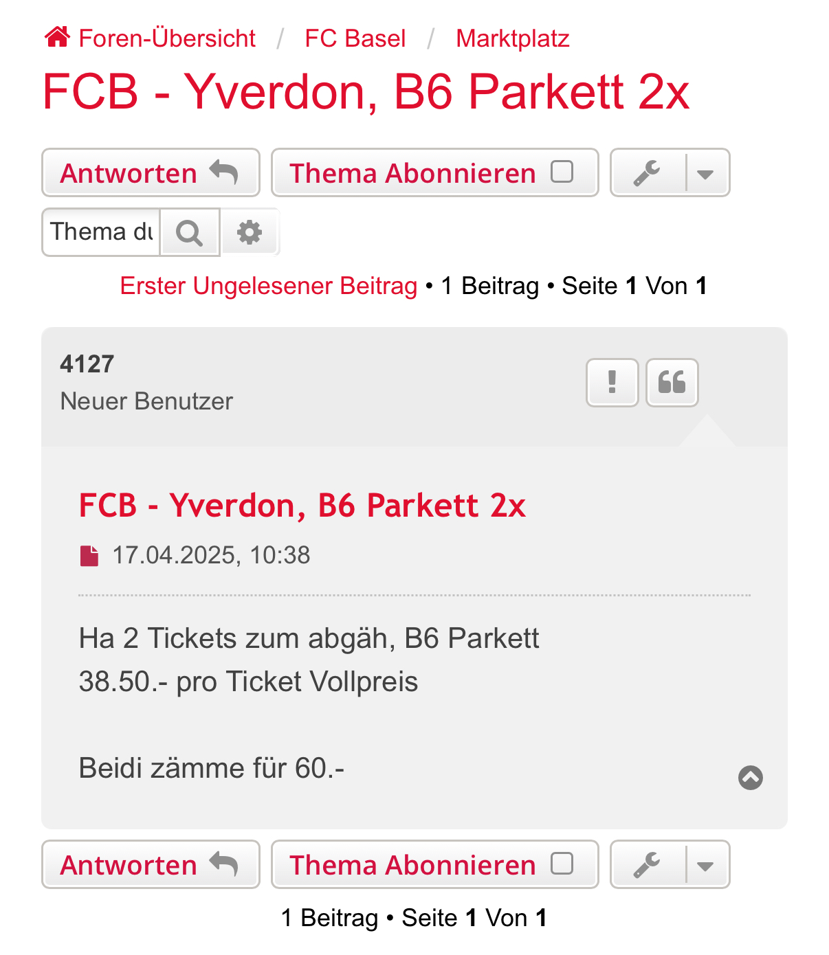 Wersch so lieb und würdisch mr ticket für 100 verchaufe? Min sohn würd so gärn go. Mir hei eig saisoncharte im D, aber dört darf mr jo leider nid