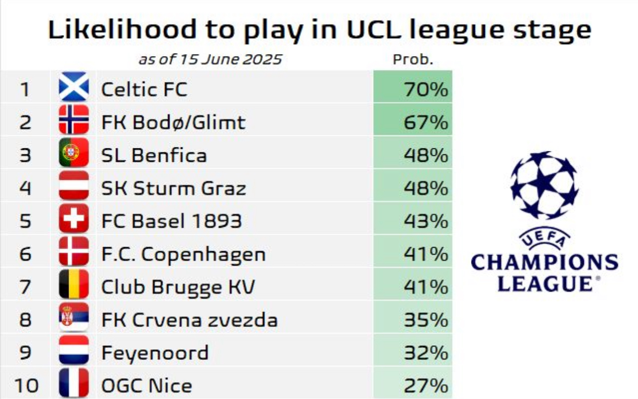 Der Verein mit dem höchsten Koeffizienten in der CL-Quali fällt höchstwahrscheinlich weg und demnach auch ein potenzieller Gegner vom FCB.