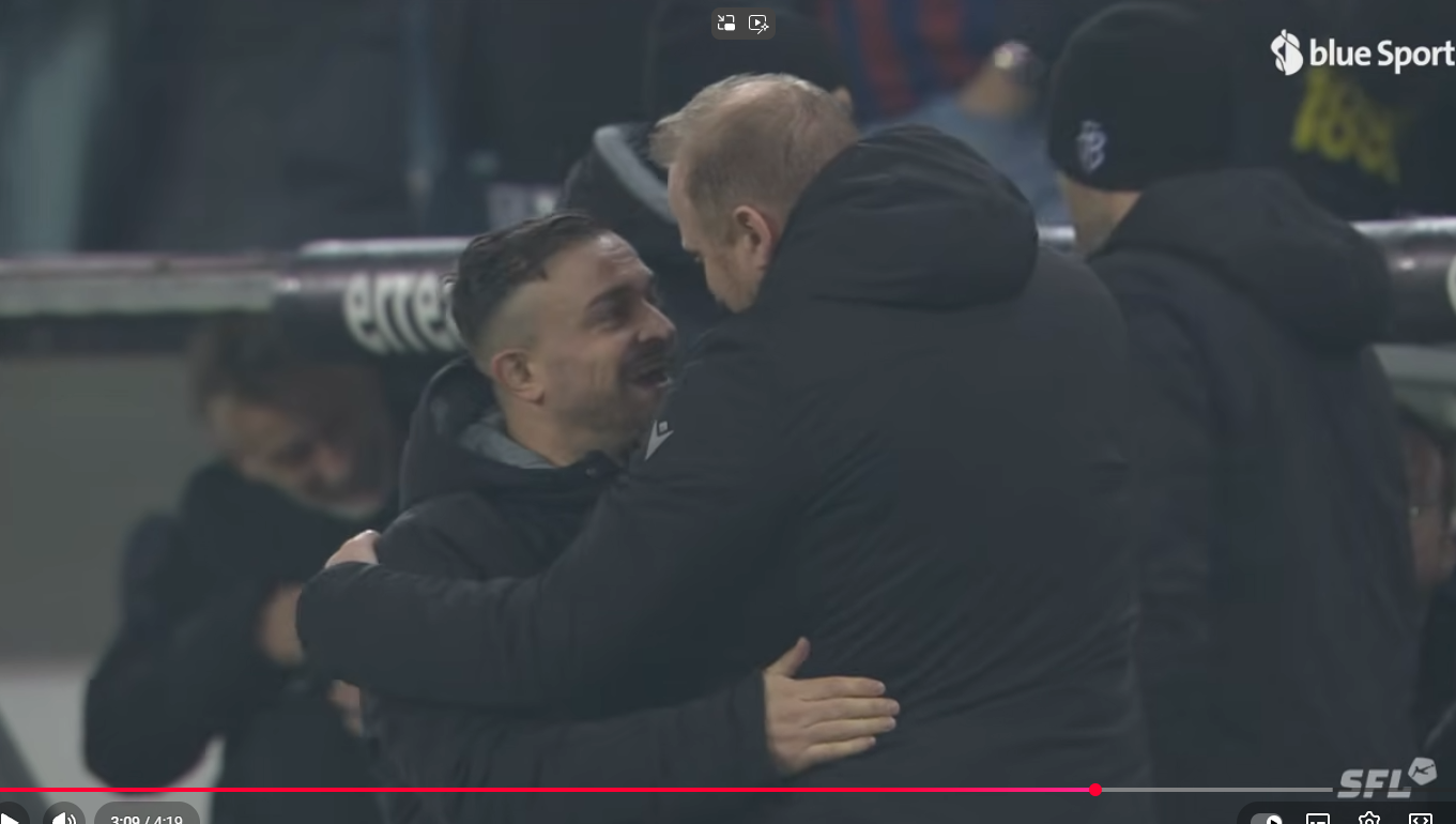 Dass sich unser Captain, welcher glaube ich das schlechteste Spiel einzog, zum 3. mal ein Penalty verschoss, und der Coach nach einem dreckig und hart erkämpften Sieg und nach all den negative Meldungen so in den Armen liegen, halte ich für ein sehr positives Zeichen.