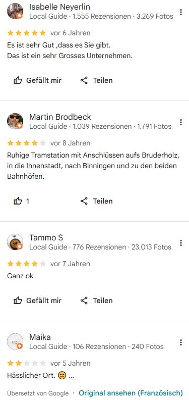Vielleicht hat die Haltstelle (oder realistischerweise die IWB) die positiven Bewertungen verfasst