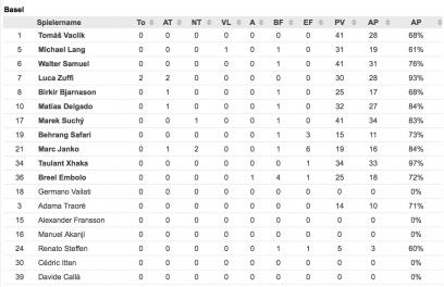 Ich muss zugeben, die subjektive Wahrnehmung wird von dieser Statistik nicht bestätigt. Hier sieht man aber auch, was Xhaka und Zuffi im DM leisten. Kein Spektakel, aber solides Fusswerk! Hoffe die beiden bleiben uns erhalten.