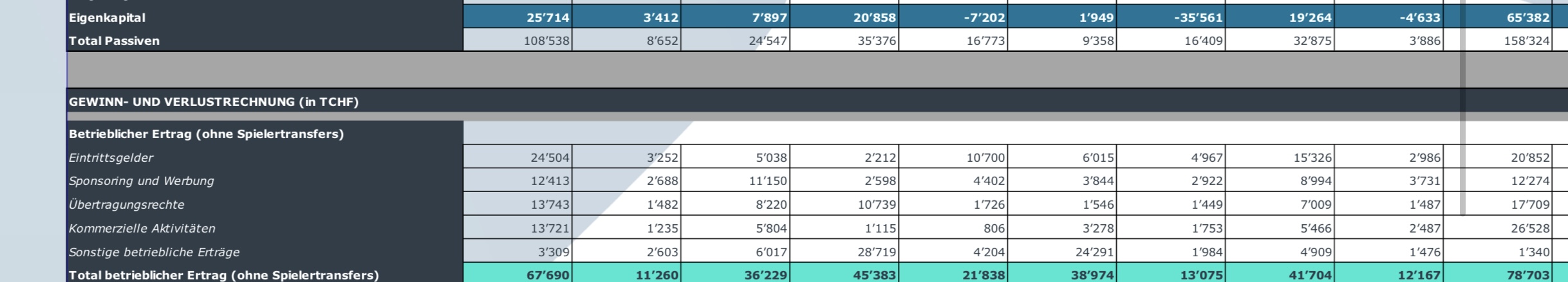 Lugano mit 28mio "sonstige betriebliche Erträge", was eigentlich nur Geldspritzen von den Eigentürmern heissen kann, ich wüsste sonst nicht was da plötzlich sonst 28mio einschiessen würden (zum Vergleich, dieser Posten ist bei 0-5mio für alle anderen Vereine ausser dem FCZ, welcher ebenfalls 12mio hat = Canepa-Geld wie ich vermute)