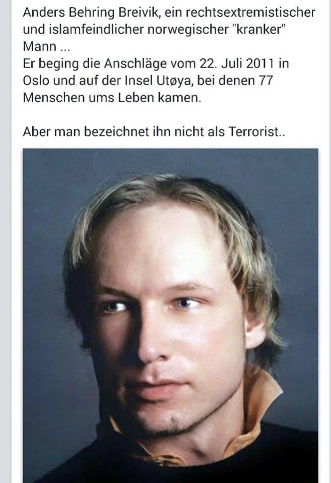 Die genaue Bezeichnung als "Extremist" oder "Terrorist" ist Haarspalterei. Wichtig ist: Die 3 Trottel von Paris sind tod, der Trottel aus Norwegen sitzt im Loch.unwichtig hat geschrieben:massenhaft solcher Seiten im Netz