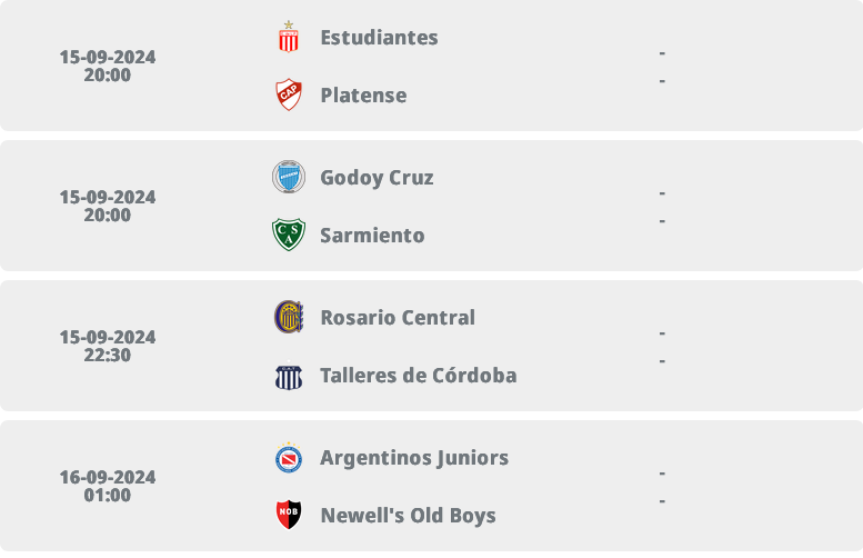 Also dr Spieldaag isch terminiert. Wenn sich di Zitfänster uf ä 15.09. konzentriert, hesch die folgende vier Spiel zur Uswahl. Godoy (Mendoza) und Central (Rosario) chasch stryyche, usser hesch bock vil Bus z fahre