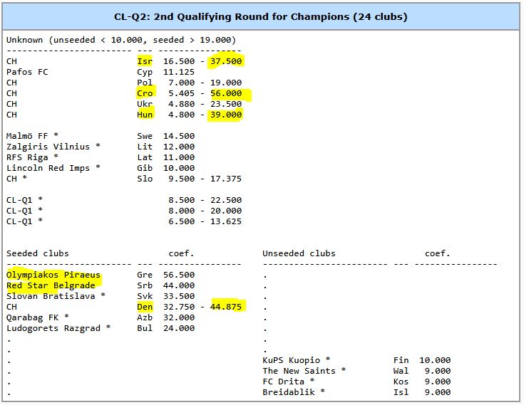 Ab der zweiten Runde wird es interessant. Die gelben Teams haben alle einen höheren Koeff. als der FCB und würden dafür sorgen, dass der FCB nicht gesetzt wäre.