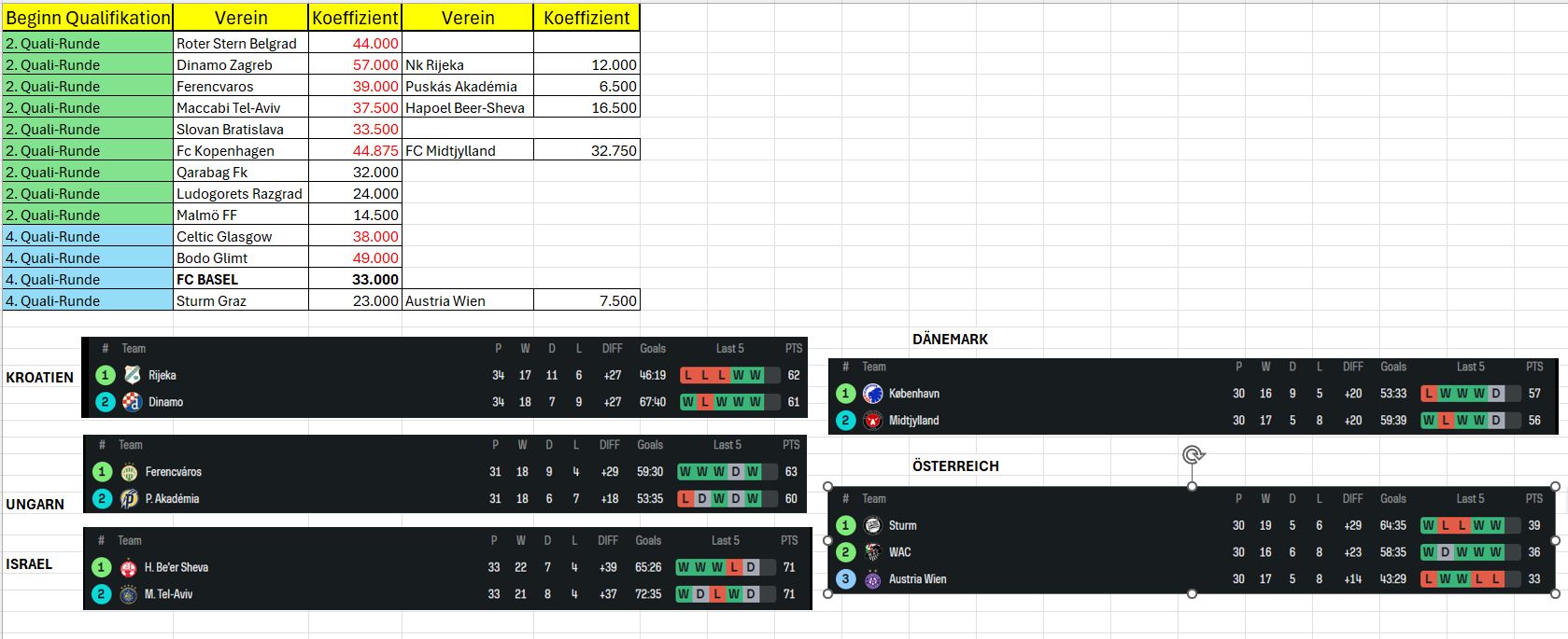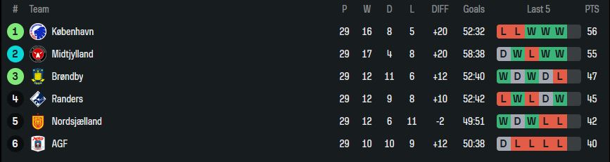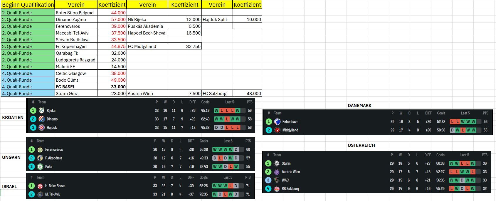 - In Dänemark ein Duell zwischen Kopenhagen/Midtjylland (wir haben nur einen höheren Koeff als Midtjylland)