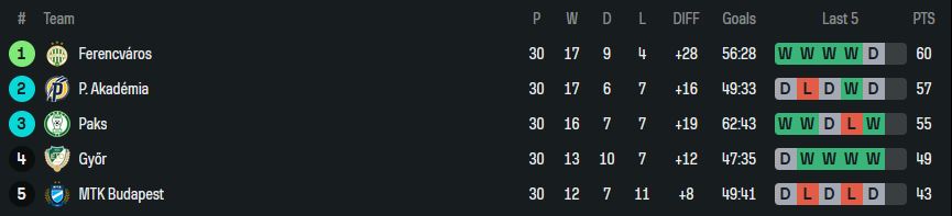 - In Ungarn sind es Ferencvaros und Puskas (wäre besser wenn Puskas den Titel holen würde)
