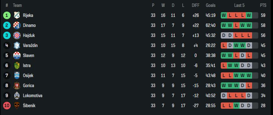 - In Kroatien kämpfen drei Teams um den Titel aber es sieht nach Dinamo Zagreb aus (wäre besser wenn Hajduk oder Rijeka gewinnen)