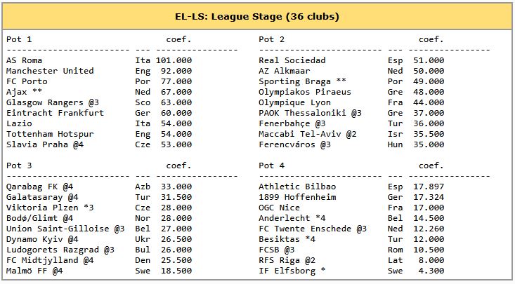 Ungesetzt: Celtic Glasgow, Basel, Sturm/Austria, Maccabi, Ferencvaros